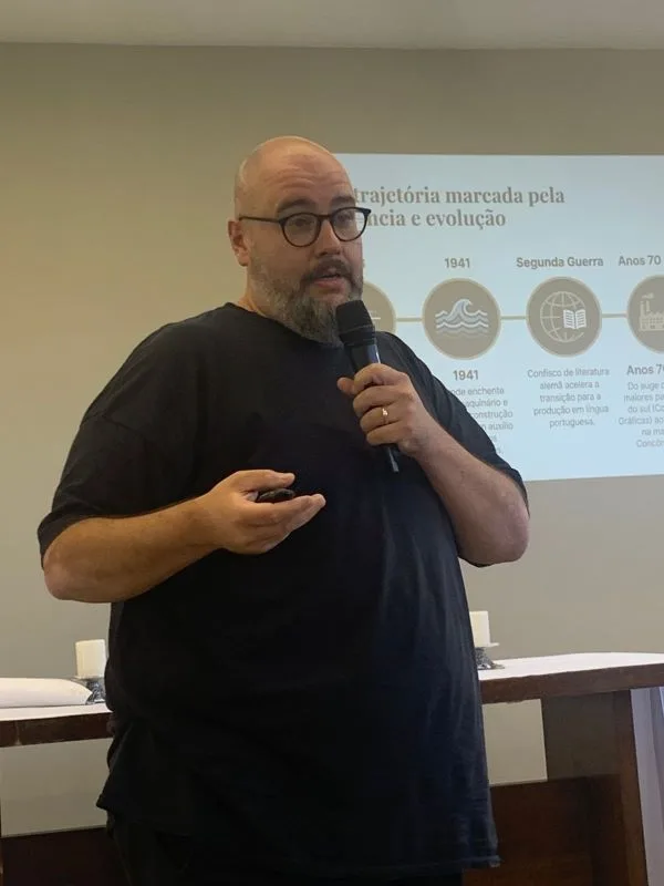 Na sequência, o diretor da instituição, dr. Gerson L. Linden, apresentou os programas e a missão formativa do seminário. Também houve apresentação do vice-presidente de Comunicação, Éderson Wasem, sobre a trajetória e os desafios da Editora Concórdia.