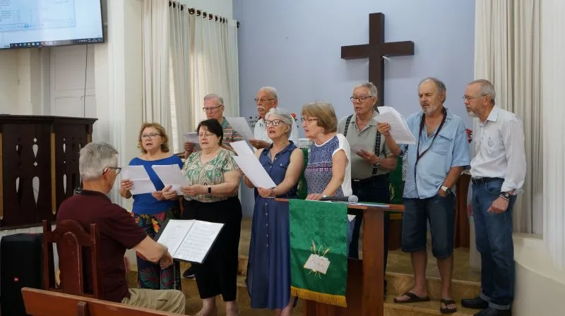 No momento “Relato de Vivências”, Nelma Lange, da Congregação Bom Pastor, de Limeira, compartilhou momentos significativos de sua vida. Célia Bayer, esposa do pastor Cláudio Bayer, que não pôde comparecer devido à recuperação de um problema de saúde, leu uma mensagem, desejando um encontro abençoado. O almoço, servido pela Congregação Cristo, foi precedido pelo canto da “Bênção Irlandesa” pelo coral da OBEM e a oração da mesa cantada por todos.