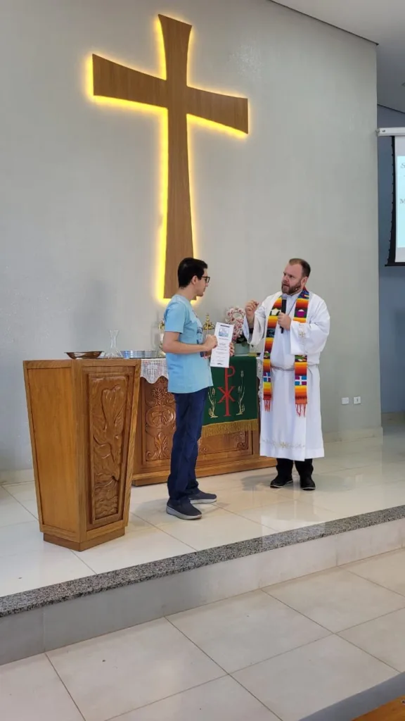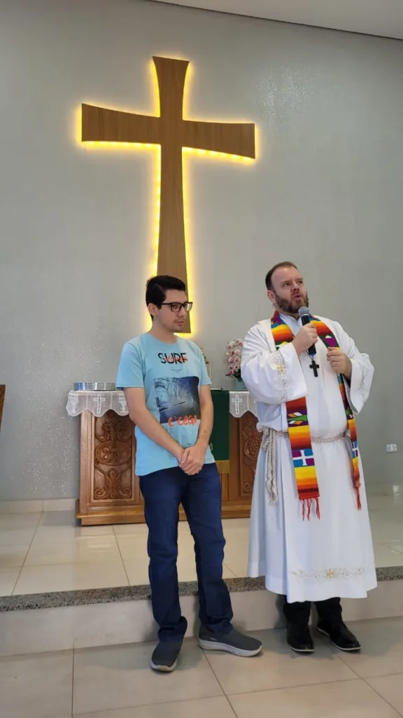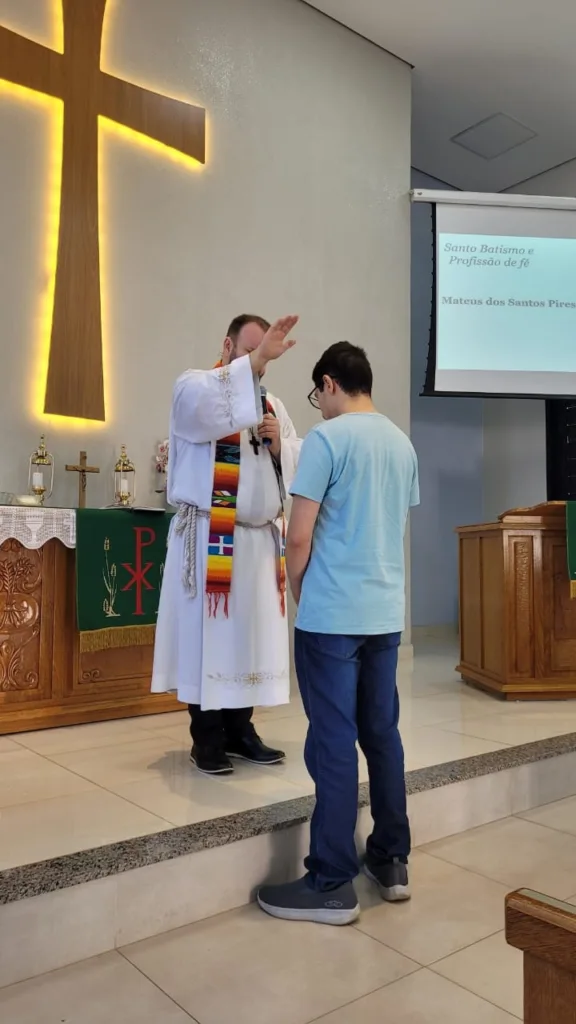 No dia 26 de outubro, foram realizados os batismos do Enrico, da Maria Vitória e do Mateus! “O batismo é mais do que um rito – é um recomeço, um abraço de Deus que acolhe, perdoa e dá nova vida em Cristo. E que bênção é celebrar isso juntos, como comunidade que ora, acolhe e caminha unida na fé!”, destacou o pastor Diego Ernesto Petry.