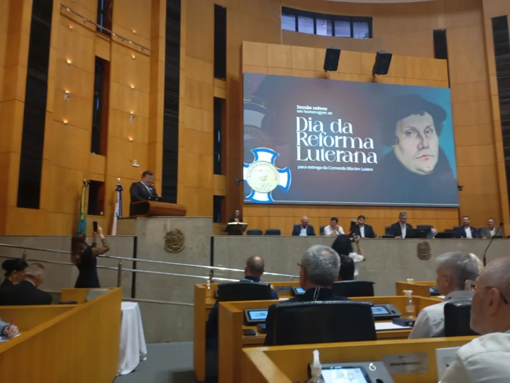 A Assembleia Legislativa do Espírito Santo realizou sessão solene em celebração ao Dia da Reforma Luterana (31 de outubro), que culminou na entrega da Comenda do Mérito Legislativo Martim Lutero. A honraria, proposta pelo deputado estadual Adilson Espíndula, reconheceu a dedicação e o trabalho de pastores e líderes da Igreja Evangélica Luterana do Brasil (IELB) na difusão do Evangelho e em relevantes serviços prestados à comunidade capixaba.