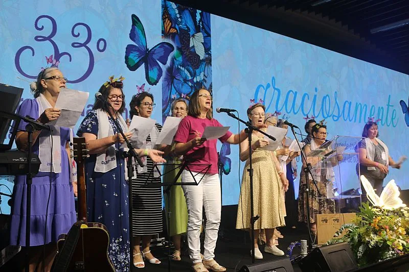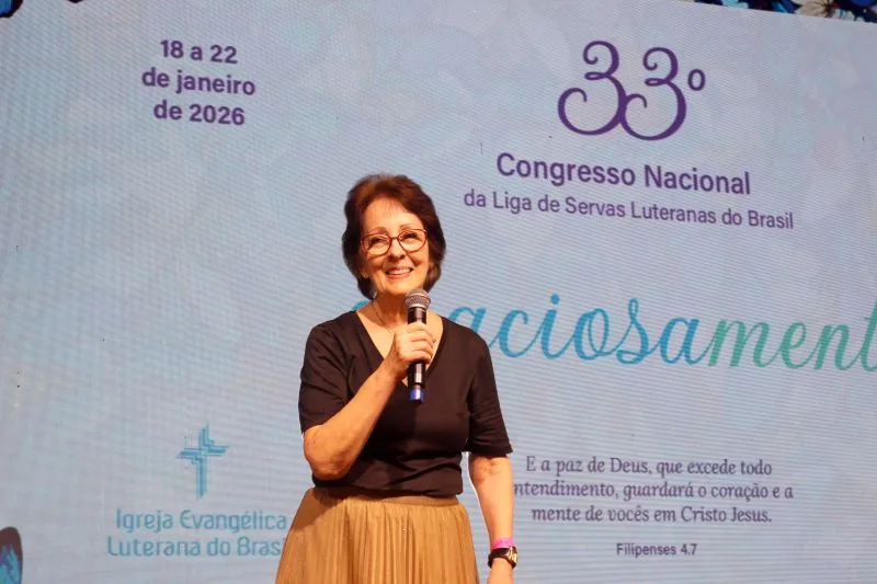 O 33º Congresso Nacional da Liga de Servas Luteranas do Brasil (LSLB) reuniu mais de 1.100 participantes no hotel Dall’Onder, em Bento Gonçalves, RS, de 18 a 22 de janeiro. Sob o tema Graciosamente e lema “E a paz de Deus, que excede todo entendimento, guardará o coração e a mente de vocês em Cristo Jesus” (Fp 4.7), a programação contou com três palestras, devocionais, apresentação de relatórios, análise de moções, eleição da nova diretoria para o biênio 2026-2028, sessão de autógrafos, noite cultural, além de momentos de comunhão, reencontros e de louvor com a banda Raça Eleita, de Três Coroas, RS.